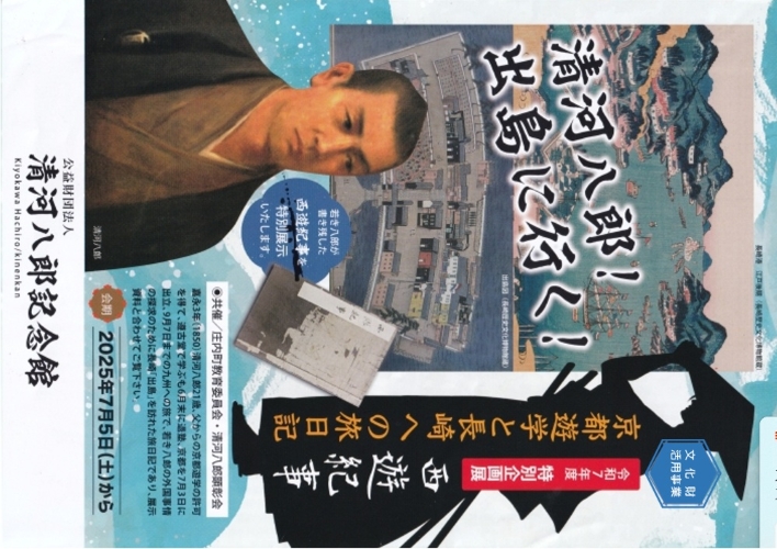 公益財団法人清河八郎記念館、令和7年度特別企画展が開催されています。テーマは「西遊紀事」。八郎が生家で家業に従事していた21歳の年に、父から許可を得て京都遊学に向かった際に記した日記文。その中から京都では学べない外国事情に触れようと、長崎出島に赴いた行動力に焦点を当て展示解説しています。